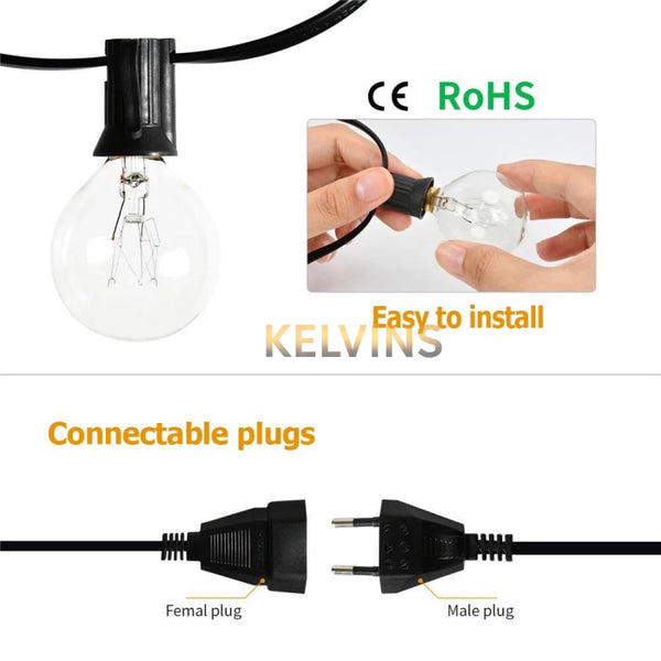 Installation : Fixez votre guirlande à plusieurs endroits pour une installation solide, vissez les ampoules (non incluses) de votre choix puis branchez-la pour profiter de son éclairage. Son câble plat a l'avantage de permettre aux douilles de se placer naturellement toutes dans le même sens, parfait pour une installation bien alignée.