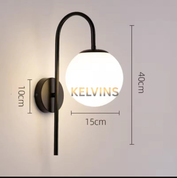 Applique murale SISSY BK , modèle de petit diamètre constituée d'une rosace de fixation, d'un bras métallique et d'un diffuseur sphérique en verre opalin soufflé, dans une finition associant une structure chromée à un diffuseur opalin.