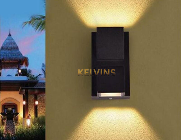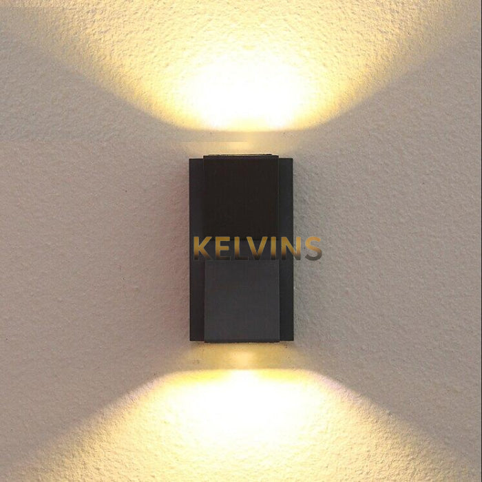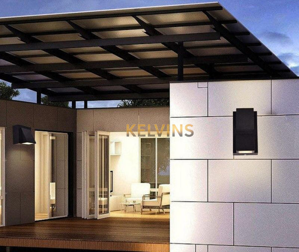 Applique d'extérieur de la collection ELECTRA composée d'une structure rectangulaire distribuant une lumière LED.