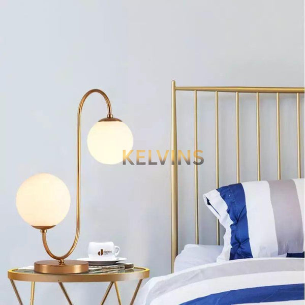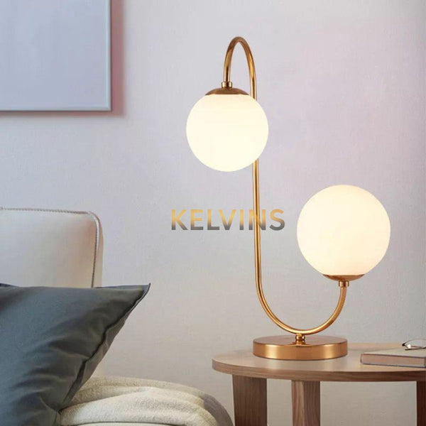 Lampe à poser ANATHOL , modèle haut de la collection ANATHOL constituée d'un pied métallique et d'un diffuseur sphérique en verre opalin soufflé, elle est équipée d'un variateur d'intensité lumineuse et présentée ici dans une finition associant un piétement en laiton brossé à un diffuseur opalin.