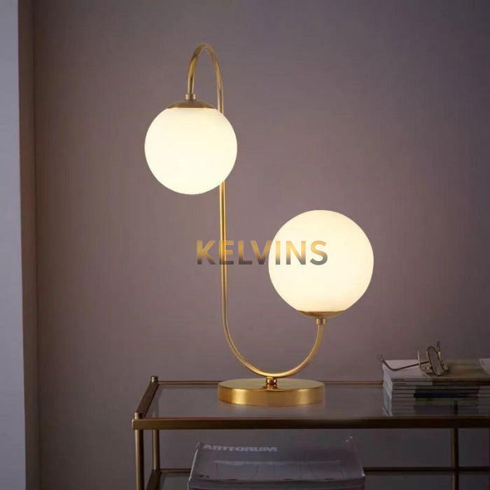 Lampe à poser ANATHOL , modèle haut de la collection ANATHOL constituée d'un pied métallique et d'un diffuseur sphérique en verre opalin soufflé, elle est équipée d'un variateur d'intensité lumineuse et présentée ici dans une finition associant un piétement en laiton brossé à un diffuseur opalin.