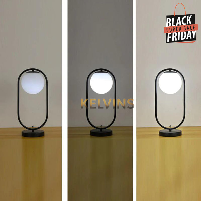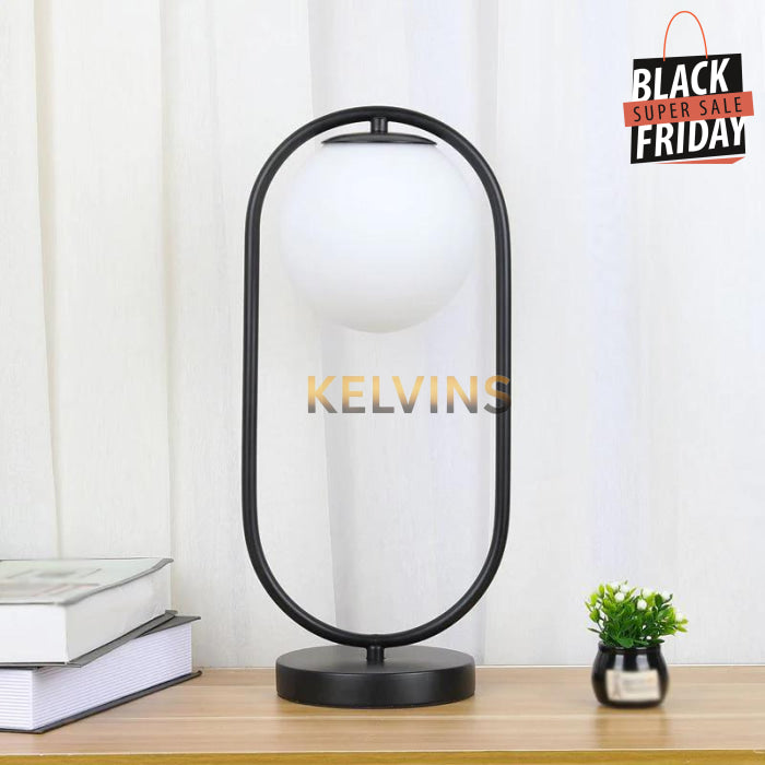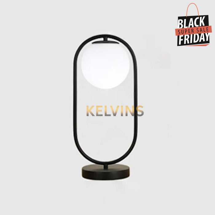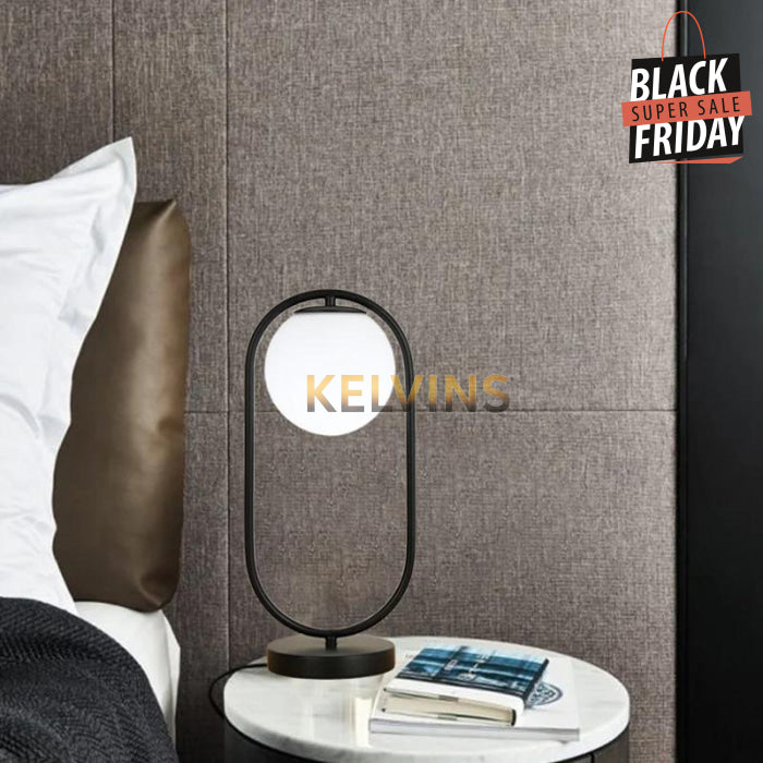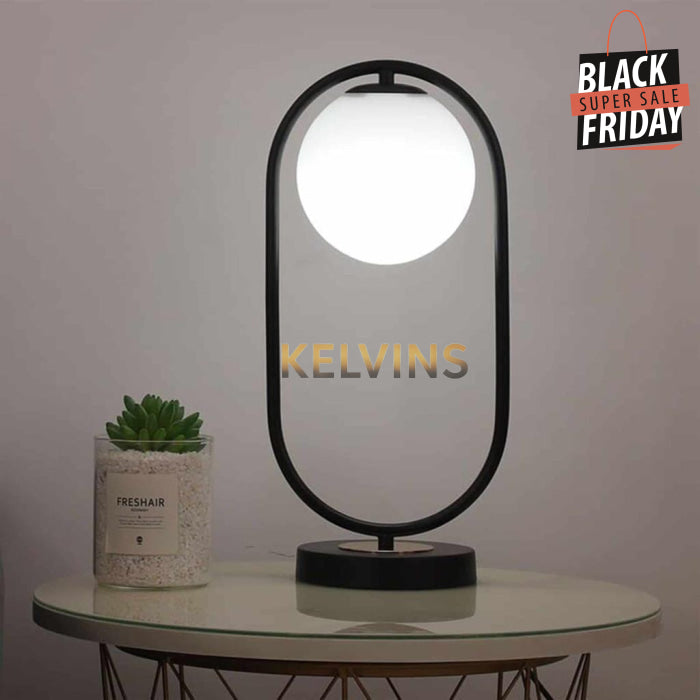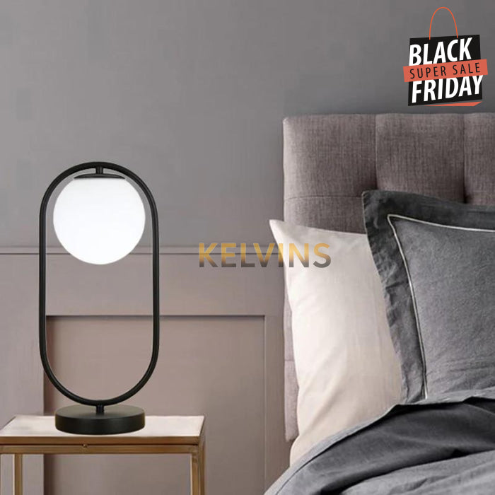 Lampe à poser ALTO BLACK , modèle haut de la collection constituée d'un pied métallique et d'un diffuseur sphérique en verre opalin soufflé, présentée ici dans une finition associant un piétement en laiton brossé à un diffuseur opalin.