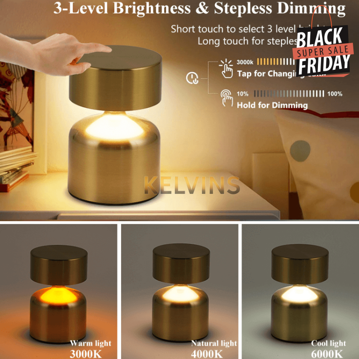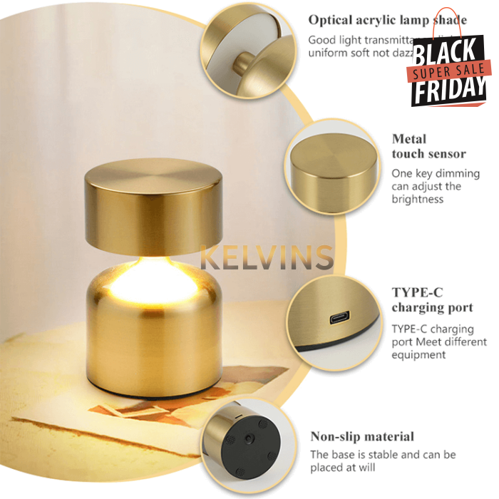 2. Apparence exquise : la lampe de table sans fil rechargeable dispose d'un boîtier en métal à surface galvanisée pour un look sophistiqué. Conception de base antidérapante
