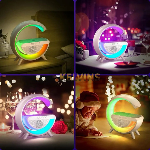 Veilleuse intelligente GABI 3 en 1, LED RGB, chargeur sans fil pour IPHONE uniquement, haut-parleur Bluetooth pour bureau atmosphère chambre décoration 15W lampes de chevet.