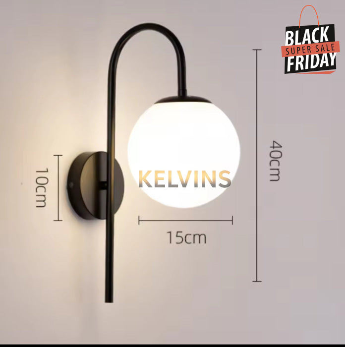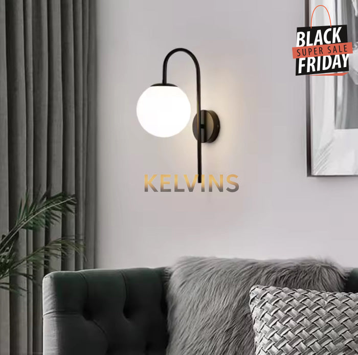 Applique murale SISSY BK  , modèle de petit diamètre constituée d'une rosace de fixation, d'un bras métallique et d'un diffuseur sphérique en verre opalin soufflé, dans une finition associant une structure chromée à un diffuseur opalin.