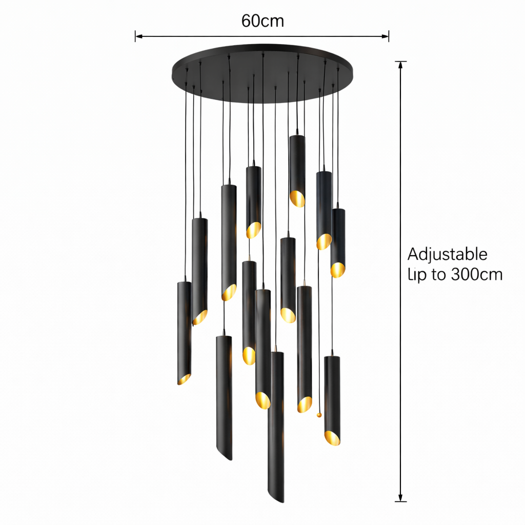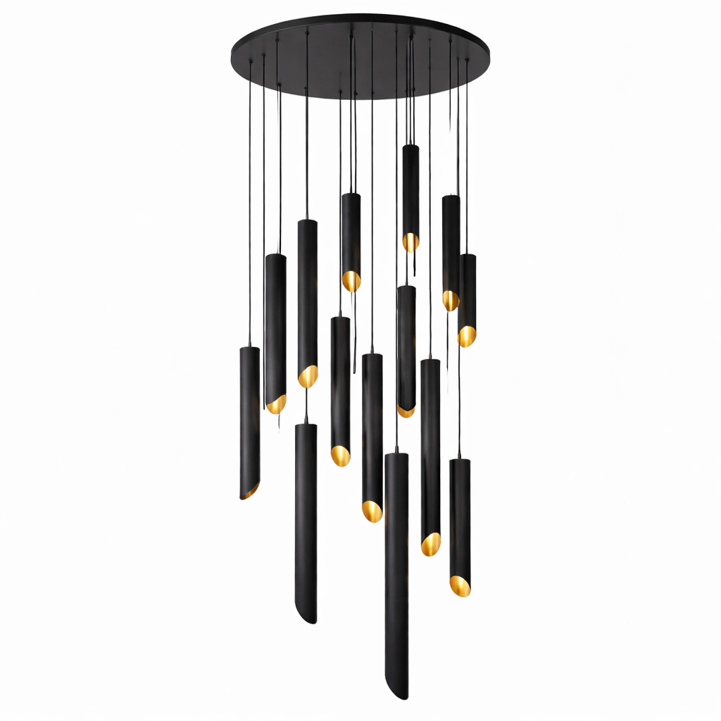 Apportez une signature lumineuse spectaculaire à vos espaces avec cette suspension CIGARE CASCADE composée de 13 cylindres en aluminium au design moderne et minimaliste. Pensée pour les volumes généreux et les projets architecturaux haut de gamme, elle crée un véritable effet “wow” dès l’entrée.
