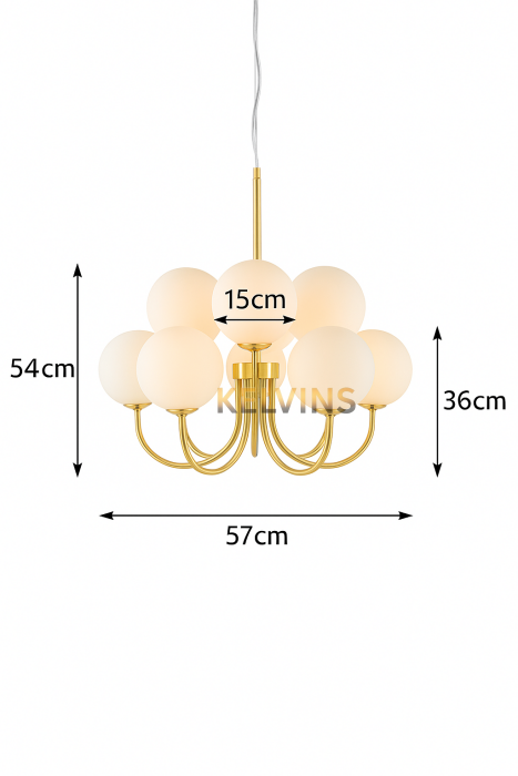Toute nouvelle toute belle, la nouvelle suspension ELONA avec 10 boules  arrive sur le site  avec un style lumineux qui va vous donner envie de changer la lumière à tous les étages !  Cette suspension génère une intensité lumineuse de 800 lumens. Le produit est fournit sans ampoule.