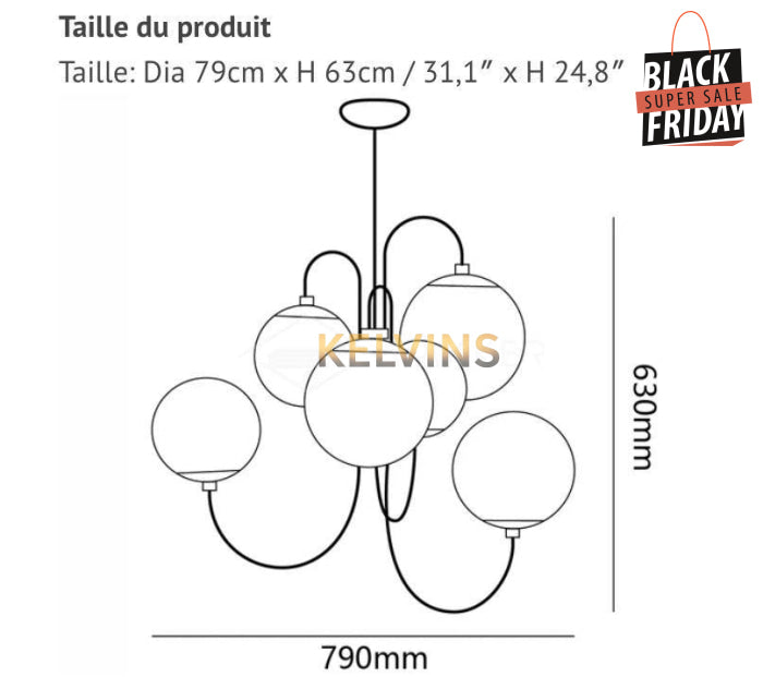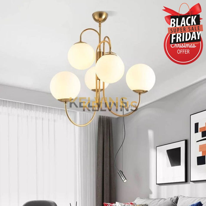 Toute nouvelle toute belle, la nouvelle suspension ANATHOL avec 6 boules arrive sur le site avec un style lumineux qui va vous donner envie de changer la lumière à tous les étages ! Cette suspension génère une intensité lumineuse de 800 lumens et diffuse une lumière de couleur blanc chaud chaleureuse de 3000 kelvins. Le produit est fournit sans ampoule.