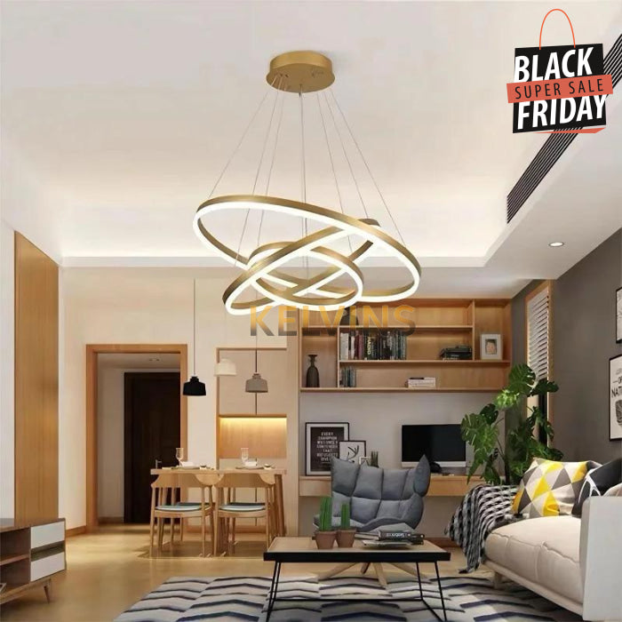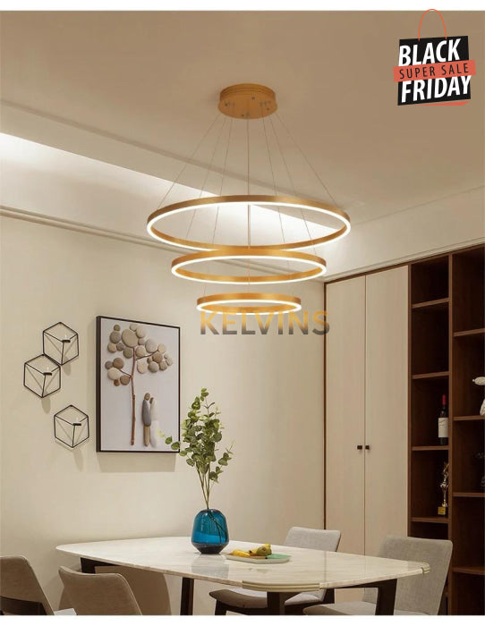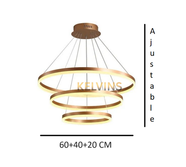 suspendue DAVOS GOLD 60 CM au Design moderne, nouveau modèle 3 cercles LED, luminaire décoratif d'intérieur, idéal pour un hôtel, une salle à manger, un café, une chambre à coucher, un salon ou une salle de séjour