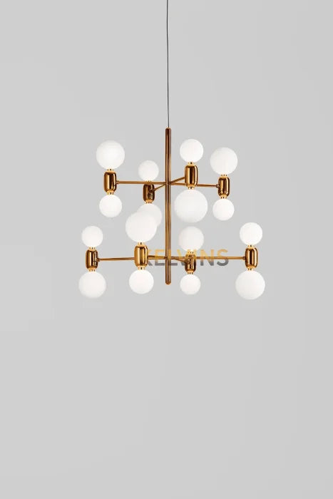 Une suspension d’exception alliant verre soufflé et céramique dorée, ., la BALIZE 16 Boules séduit par son design sculptural et sa finition Gold éclatante, symbole de raffinement et de caractère.