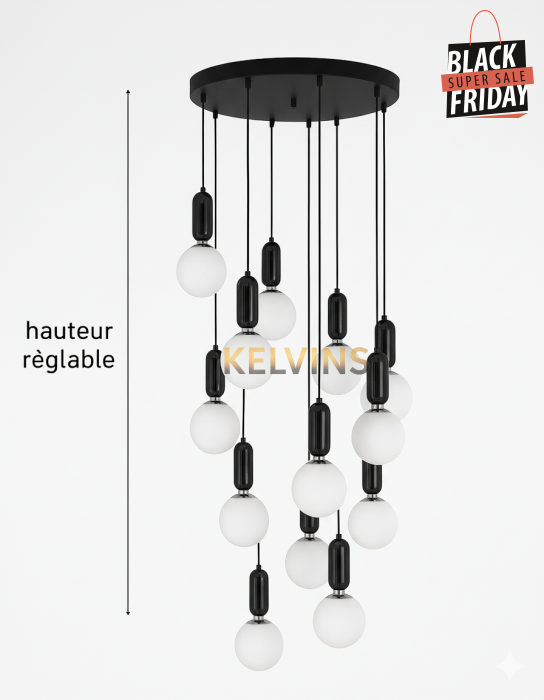 La suspension JOBY CASCADE BLACK contient 13 boules de 20cm pour décorer vôtre intérieur