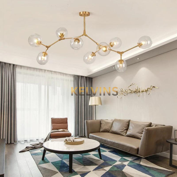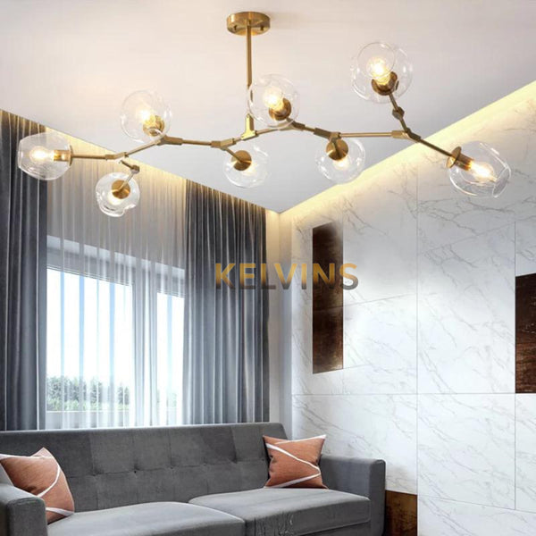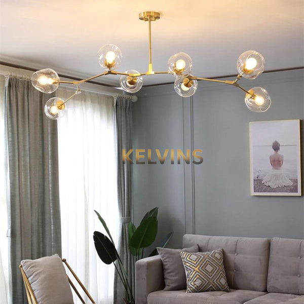Toute nouvelle toute belle, la nouvelle suspension LOLA 8 Boules CHAMPAGNE arrive sur le site avec un style lumineux qui va vous donner envie de changer la lumière à tous les étages ! Cette suspension génère une intensité lumineuse de 800 lumens. ampoule non incluse
