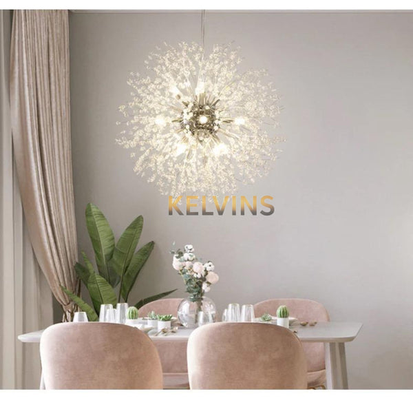 Toute nouvelle toute belle, la nouvelle suspension SAMARA avec diamètre de 50cm et 9 ampoules arrive sur le site avec un style lumineux qui va vous donner envie de changer la lumière à tous les étages ! Cette suspension génère une intensité lumineuse de 800 lumens. ampoule non incluse