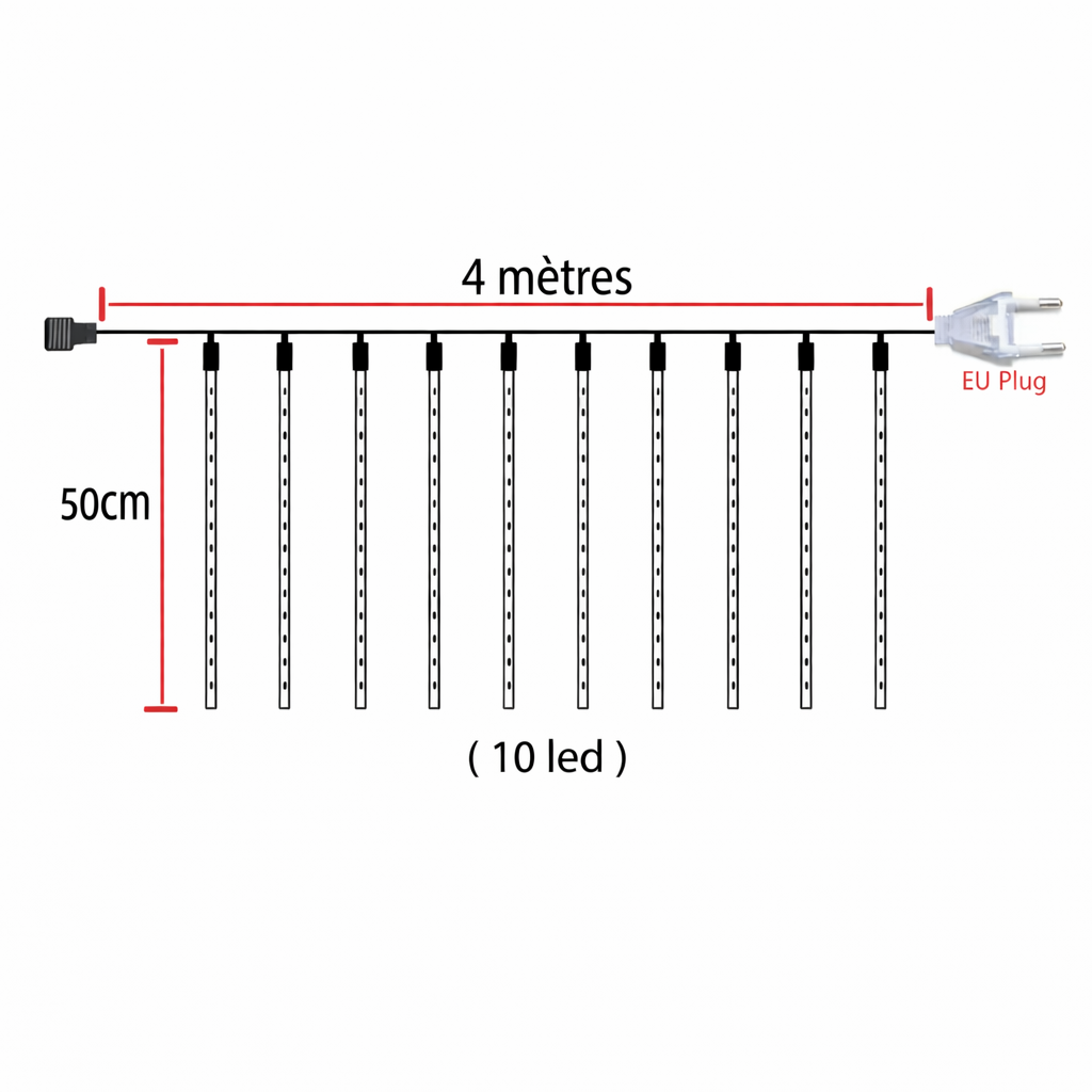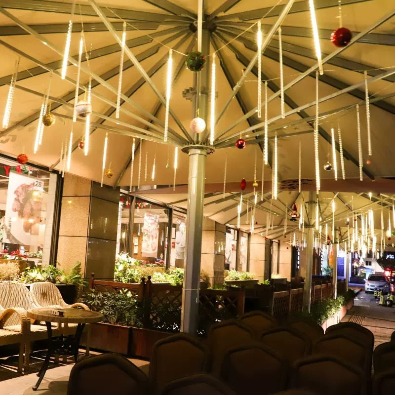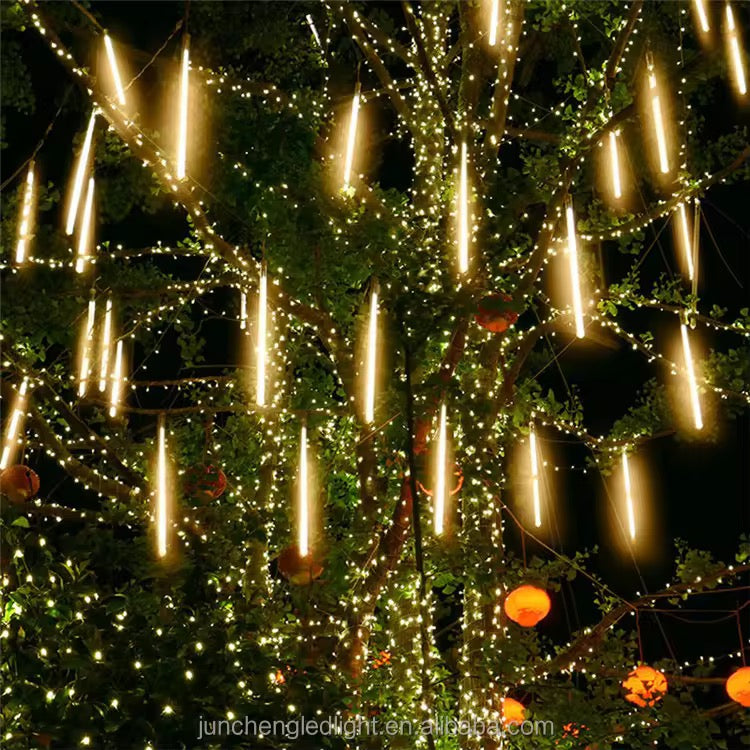 GUIRLANDE Bel effet de pluie de météores Un effet onirique apparaît avec cette lumière. C'est romantique et émouvant. Lumières de pluie de météorites LED, la lumière de chaque ampoule s'allume et s'éteint une par une et rapidement, comme une pluie de météorites ou une pluie tombant du ciel. Haute qualité et économie d'énergie IP65 étanche à l'eau et à la poussière, non limité dans le temps et l'espace, couleur 3000K