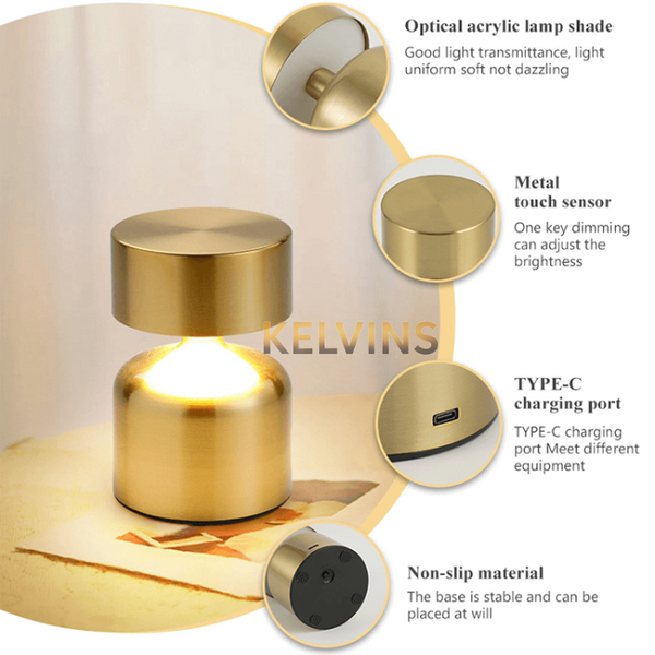 2. Apparence exquise : la lampe de table sans fil rechargeable dispose d'un boîtier en métal à surface galvanisée pour un look sophistiqué. Conception de base antidérapante