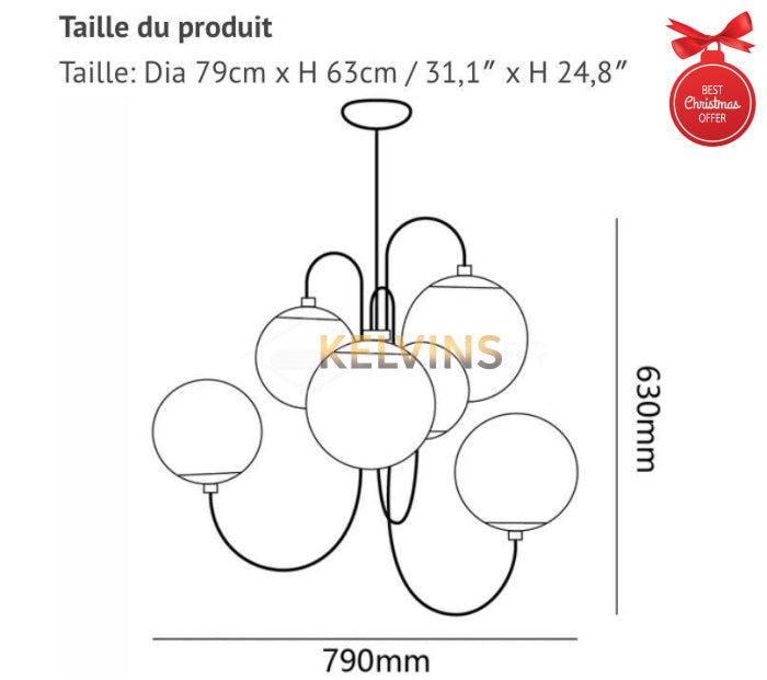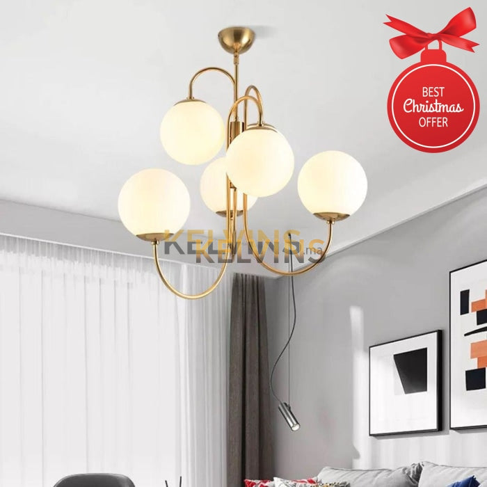 Toute nouvelle toute belle, la nouvelle suspension ANATHOL avec 6 boules arrive sur le site avec un style lumineux qui va vous donner envie de changer la lumière à tous les étages ! Cette suspension génère une intensité lumineuse de 800 lumens et diffuse une lumière de couleur blanc chaud chaleureuse de 3000 kelvins. Le produit est fournit sans ampoule.