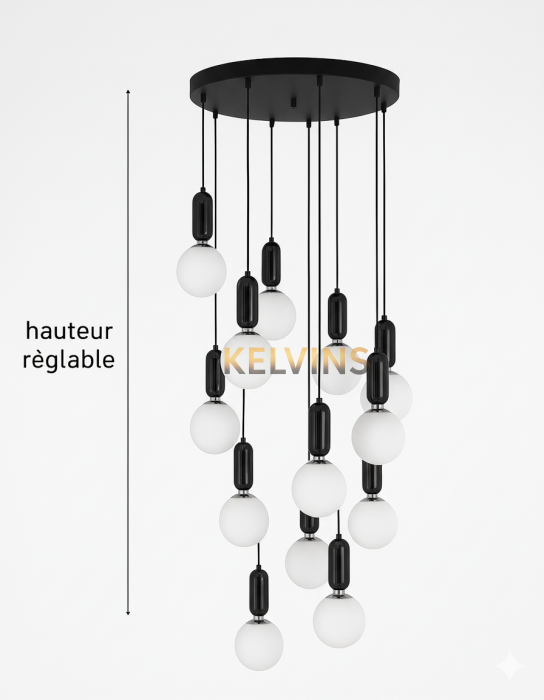 La suspension JOBY CASCADE BLACK contient 13 boules de 20cm pour décorer vôtre intérieur