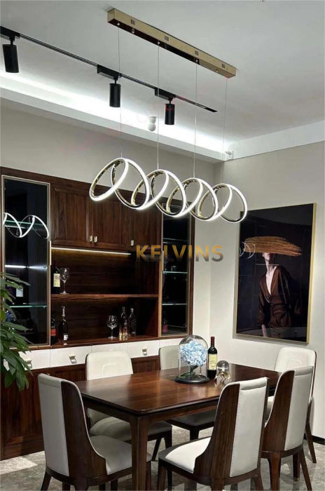 Suspension moderne SWEET GOLD avec 8 anneaux a led avec couleur echangeable, luminaire décoratif d'intérieur, idéal pour un hôtel, une salle à manger, un café, une chambre à coucher, un salon ou une salle de séjour