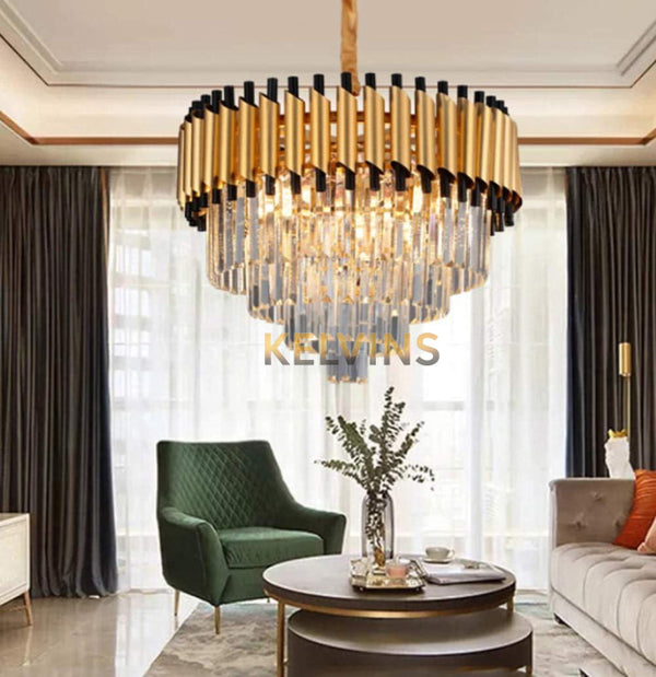 Tout nouveau tout beau , le nouveau lustre DUBAI GOLD BK en cristal arrive sur le site avec un style lumineux qui va vous donner envie de changer la lumière à tous les étages ! Cette suspension génère une intensité lumineuse de 800 lumens et diffuse une lumière de couleur blanc chaud chaleureuse de 3000 kelvins. Le produit est fournit sans ampoule.